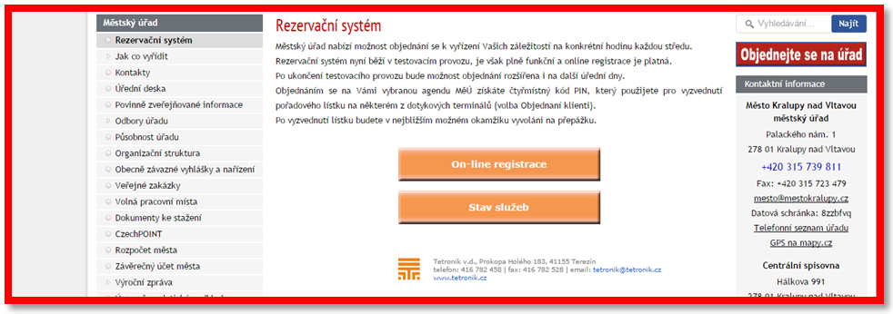 Rezervační systém Městského úřadu Kralupy nad Vltavou