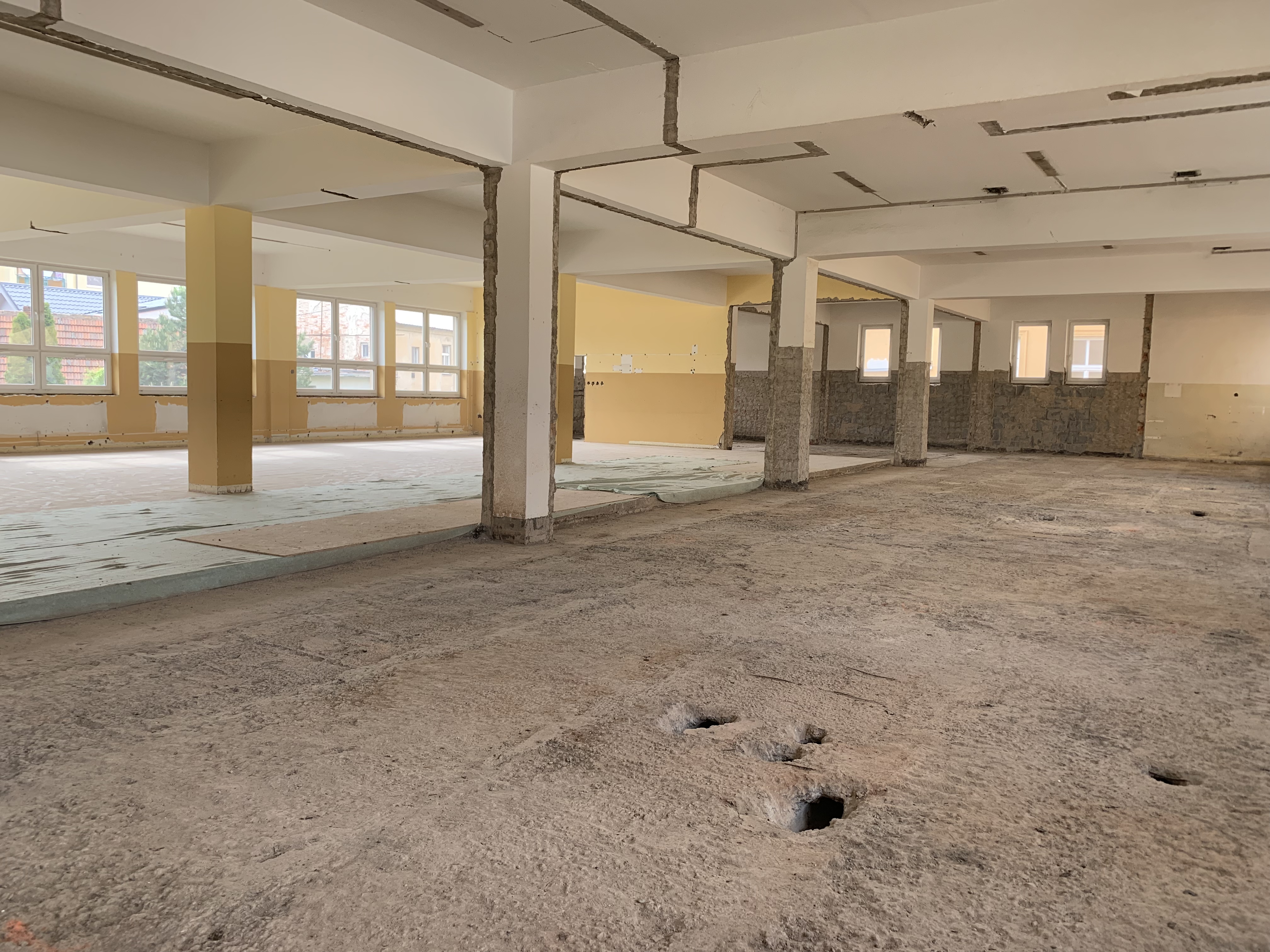 Probíhající rekonstrukce školní kuchyně a jídelny na ZŠ Komenského.