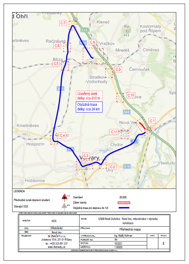 Od 8. listopadu 2021 až do 31. března 2022 bude uzavřena část silnice II/608 (stará teplická) v obci Nová Ves, a to od čerpací stanice Benzina, až k autovrakovišti na výjezdu z obce (směr Straškov-Vodochody).