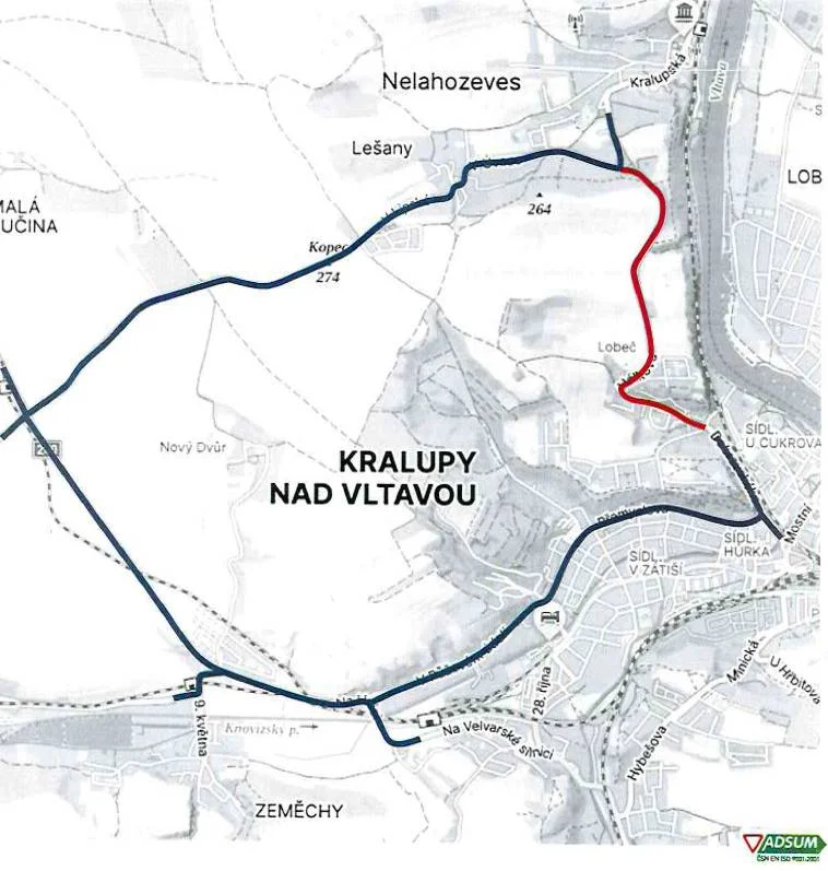 Rekonstrukce se týká úseku o délce 1,8 km, jenž bude veden od křižovatky Jeronýmovo náměstí – Hostivítova až po křižovatku u rozcestí Nelahozeves.