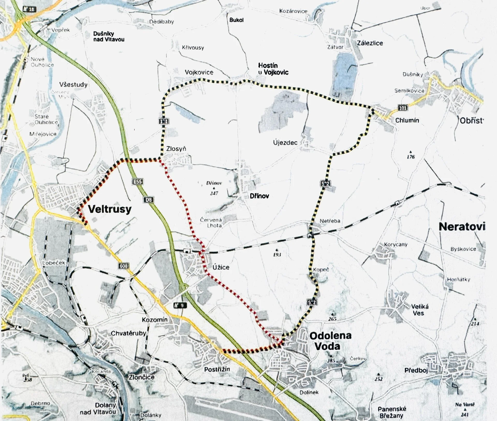 Zlosyň – Vojkovice – Hostín u Vojkovic – Chlumín – Netřeba – Kopeč – Odolena Voda – Postřižín
