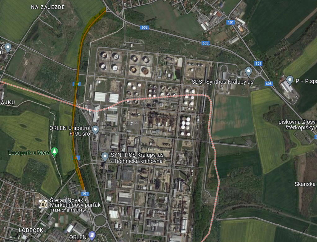 K zastávce „Kralupy n.Vlt.,Synthos“ budou zajíždět jen vybrané spoje (dopravení zaměstnanců Synthosu a Unipetrolu na/ze směn).
