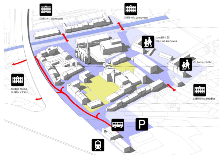 Rada města na svém posledním jednání uložila odboru realizace investic zajistit projektovou dokumentaci a vyřízení odpovídajícího povolení na demolici budovy bývalého hotelu Praha a částí budov v areálu pivovaru. Toto usnesení navazuje na usnesení zastupitelstva, které na svém jednání v říjnu 2014 schválilo urbanistické a dopravní řešení prostoru „centra“ města, které zpracovaly projekční týmy Majo architekti a DUK atelier. Tento urbanistický návrh při řešení uvažuje s demolicí budovy bývalého hotelu Praha. Urbanistický návrh řešení náměstí je zpracován v souladu se studiemi arch. Picka a projekčního ateliéru CASUA, které byly zpracovány na řešení centra města. Urbanistický návrh dále rozpracovává i řešení dopravní obslužnosti – tj. parkování, pohyb vozidel a chodců, vjezdy a výjezdy na a z náměstí.