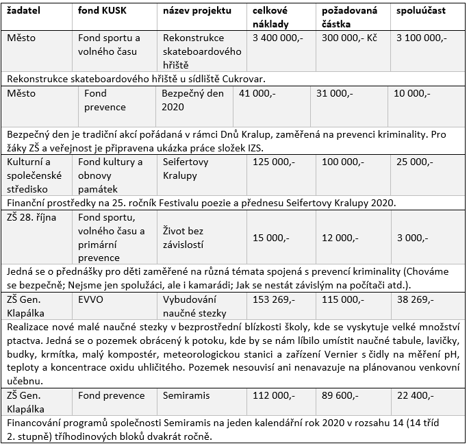 Městu Kralupy nad Vltavou a jeho příspěvkovým organizacím se podařilo získat dotace z následujících Středočeských fondů: